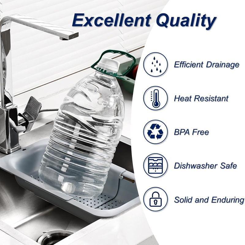 Space-Saving Kitchen Organizer: Keep your sink tidy with the Collapsible Drain Basket. Perfect for holding sponges, scrubbers, dish soap, and small kitchen items, it drains water efficiently while saving countertop space.