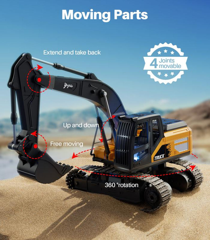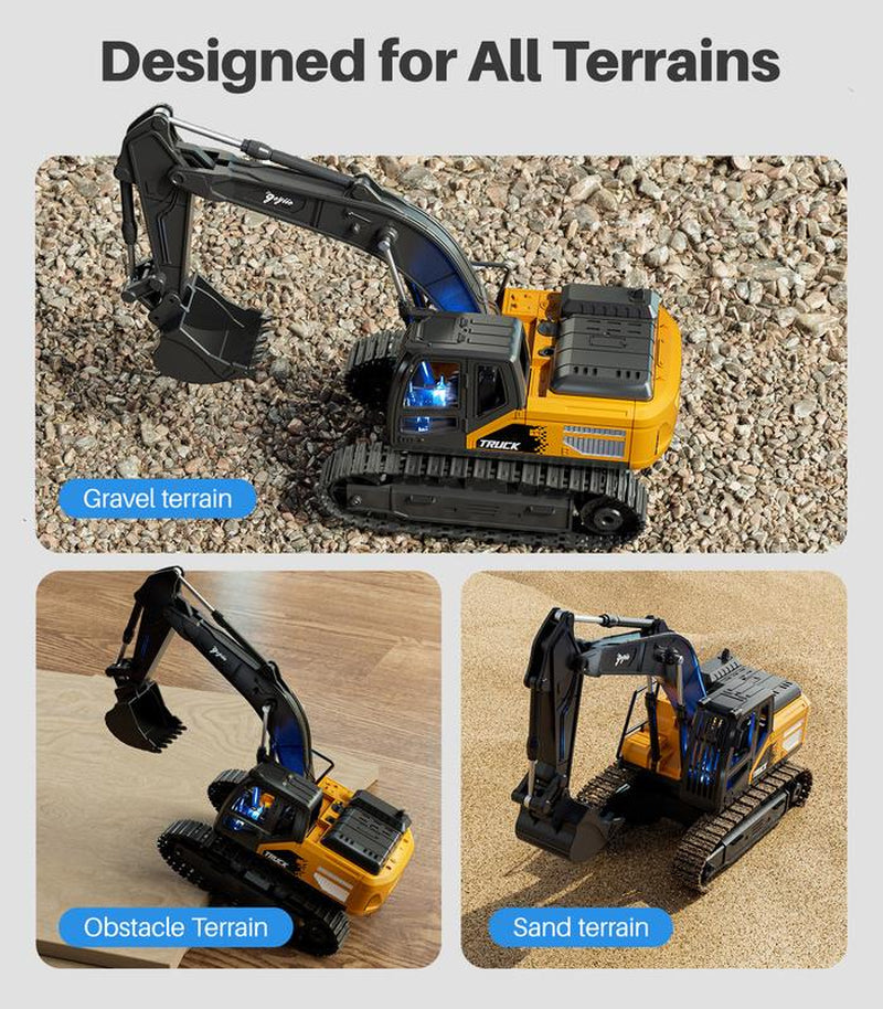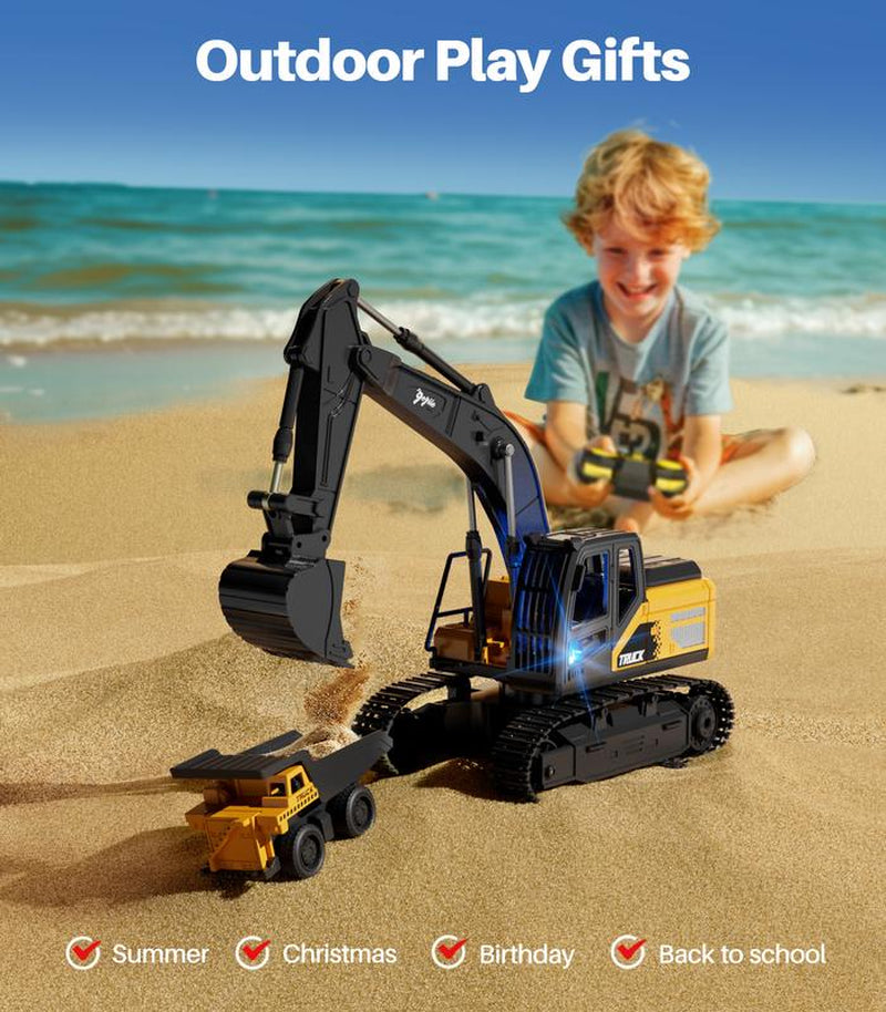 Perfect Gift for Kids: Ideal for boys who love trucks and construction vehicles, this RC excavator encourages creativity, hand-eye coordination, and outdoor activity. It’s suitable for play in sandboxes, gardens, parks, or beaches, making it a versatile addition to any toy collection.