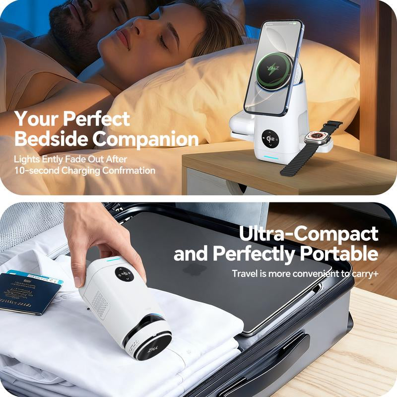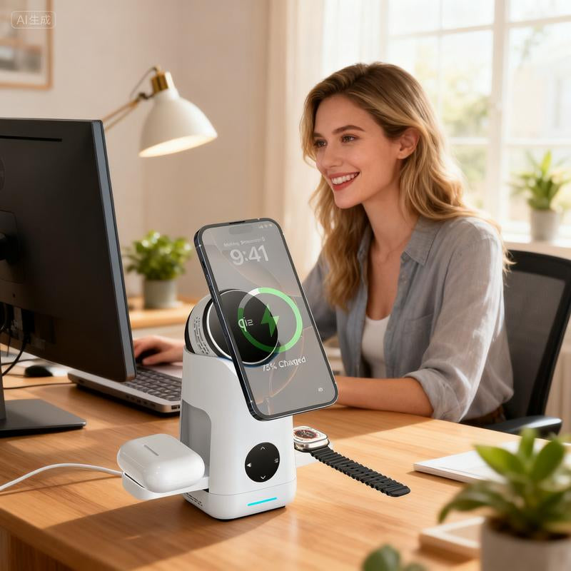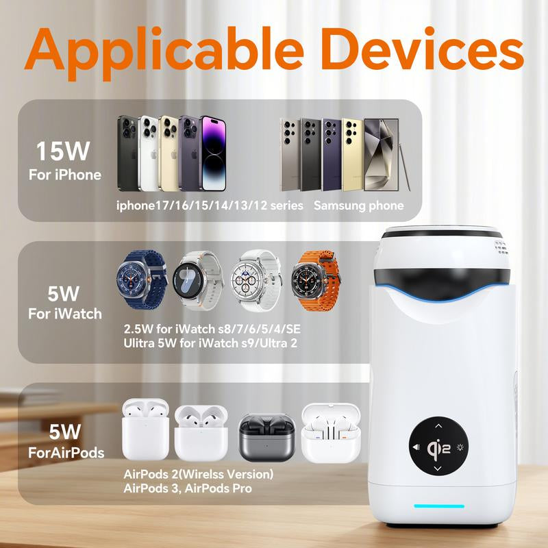 Built with smart charging technology, the station delivers safe, stable, and efficient power to all your devices. Its intelligent chipset automatically adjusts the output to prevent overcharging, overheating, and short circuits. The soft LED indicator provides gentle illumination at night, and the anti-slip base ensures steady placement. Whether at home, in the office, or while traveling, it keeps your essential devices powered with ease.