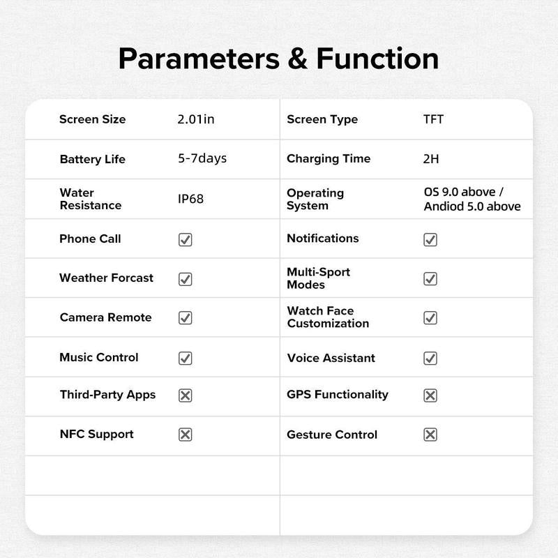 All-in-One Smart Companion: Equipped with multiple features like fitness tracking, heart rate monitoring, step counting, sleep analysis, and a built-in flashlight, this smartwatch keeps you active, informed, and ready for any situation. Whether you're exercising or working, it’s a perfect blend of technology and convenience.