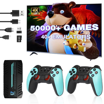 Wireless Controllers and Easy Setup: The console comes with wireless blue controllers, allowing comfortable multiplayer gameplay without messy cables. Simply plug the console into your TV, and start playing instantly—perfect for casual gaming or competitive fun with friends and family.