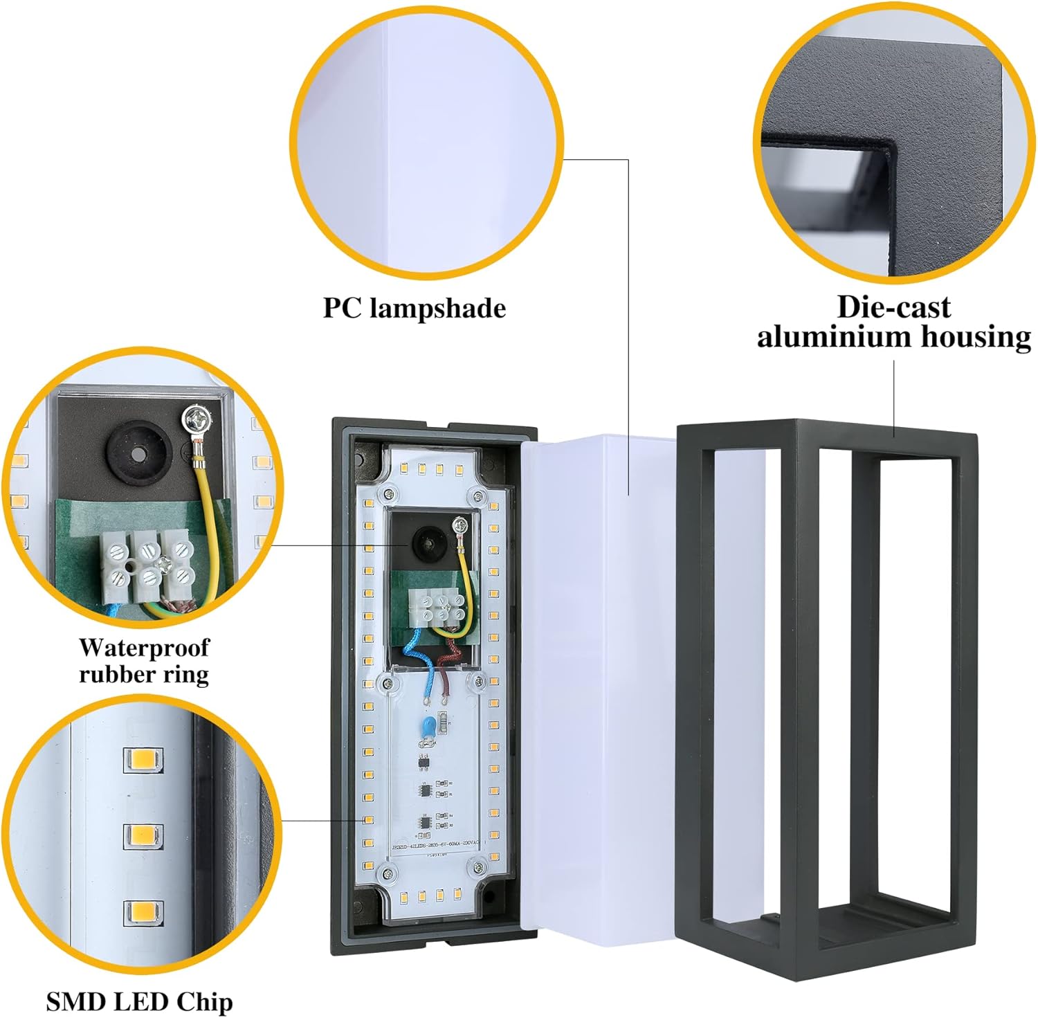• Elegant Modern Design: A minimalist rectangle profile that never goes out of style, perfect for patios, porches, gardens, garages, corridors, and balconies.