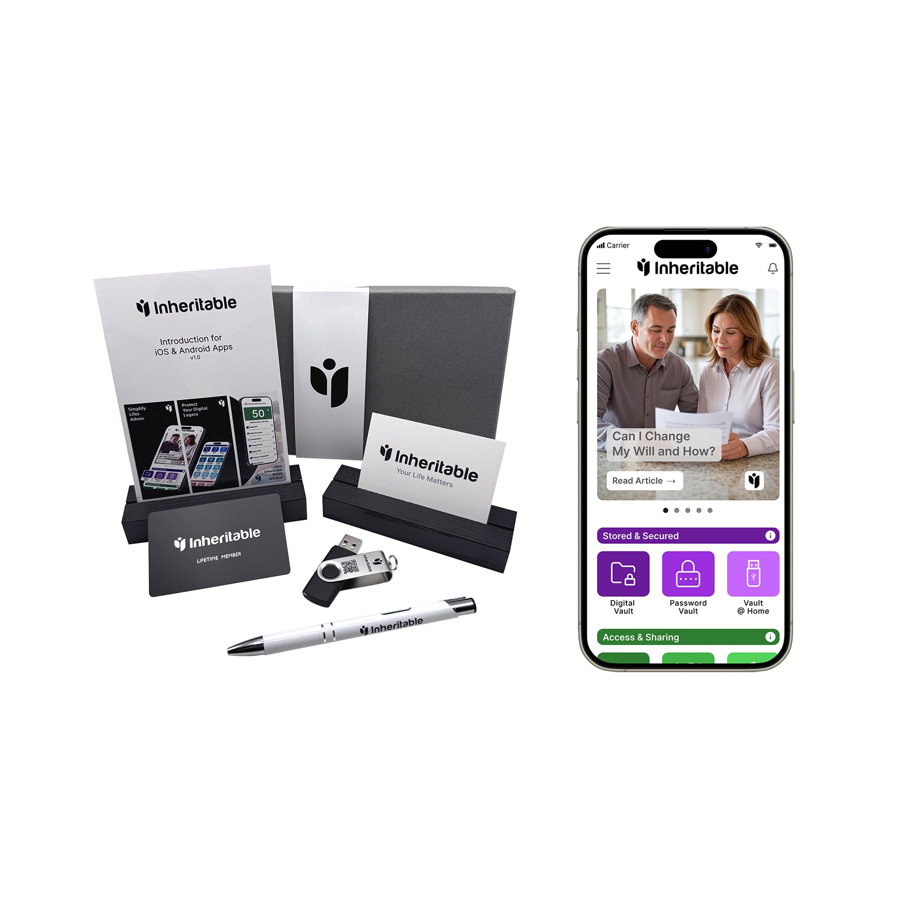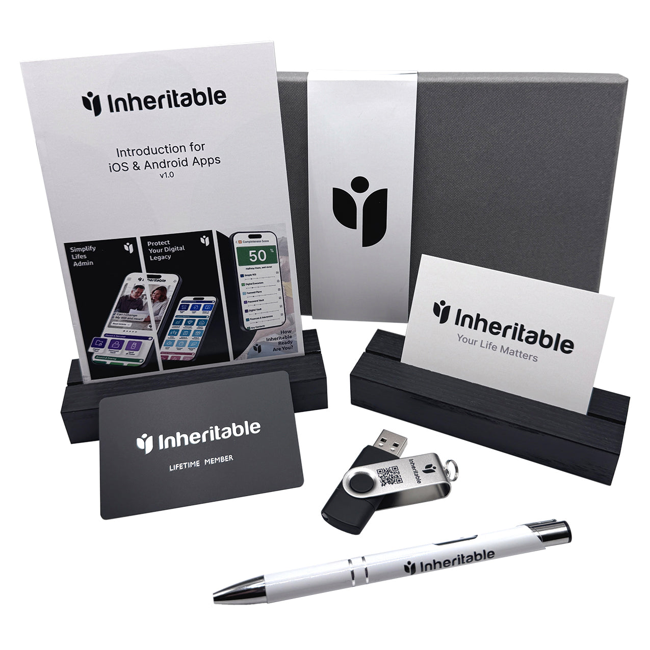 The Inheritable Gift Set is a thoughtful and lasting present that helps loved ones organise what matters most. Beautifully packaged and easy to activate, it includes a lifetime digital membership to Inheritable the secure vault for documents, passwords, memories, and personal wishes.