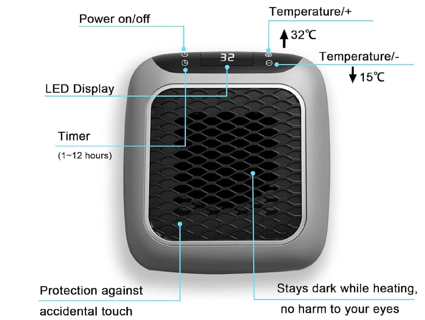 - Function: Fast heating, adjustable temperature, timer setting