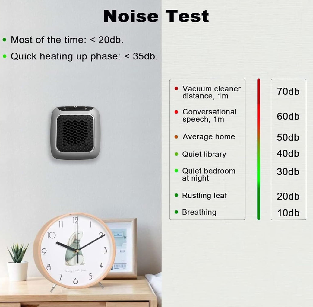 Safe and Energy-Efficient: Designed with overheat protection and energy-saving technology, this wall-mounted heater provides reliable warmth while keeping electricity usage low. Its quiet operation ensures a peaceful environment, ideal for sleeping, studying, or relaxing.